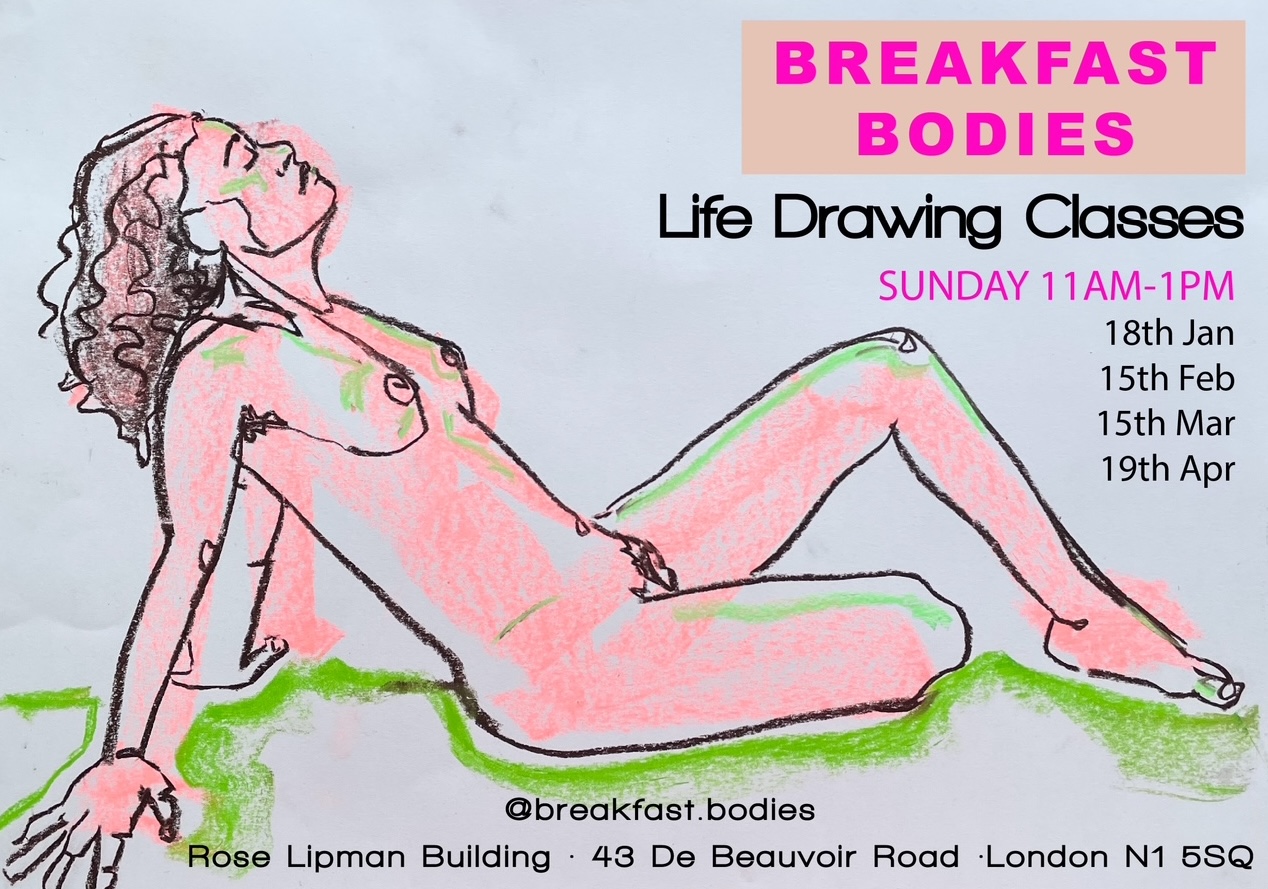 In this two hour life drawing class there will be guided exercises to get your creative juices flowing and your host Laura will be on hand to offer support and advice throughout. Our magnificent models with throw some fun shapes accompanied by tunes played from a playlist chosen by you, the workshop attendees. There will be some materials and paper available, but please feel free to bring your own. Tea, coffee and juice will also be provided. Come wiggle your pencils for some juicy life drawing times!